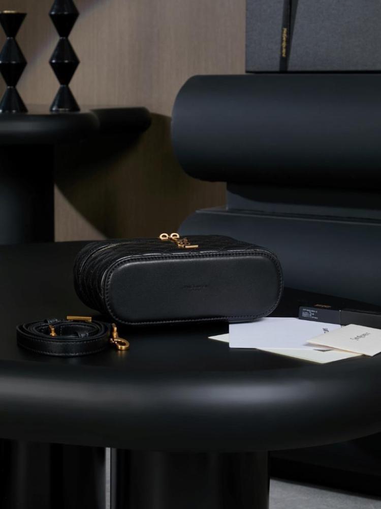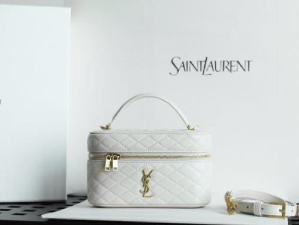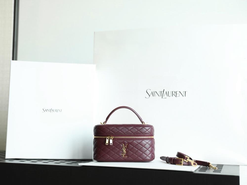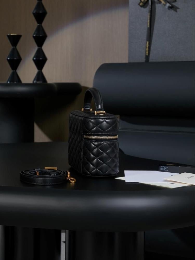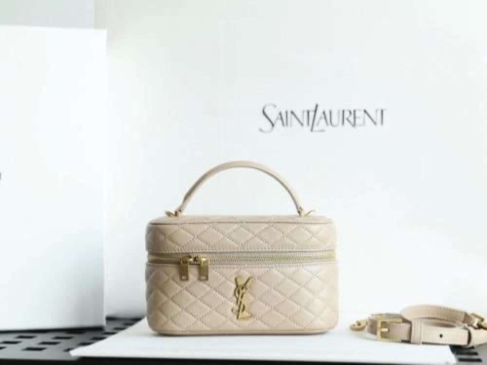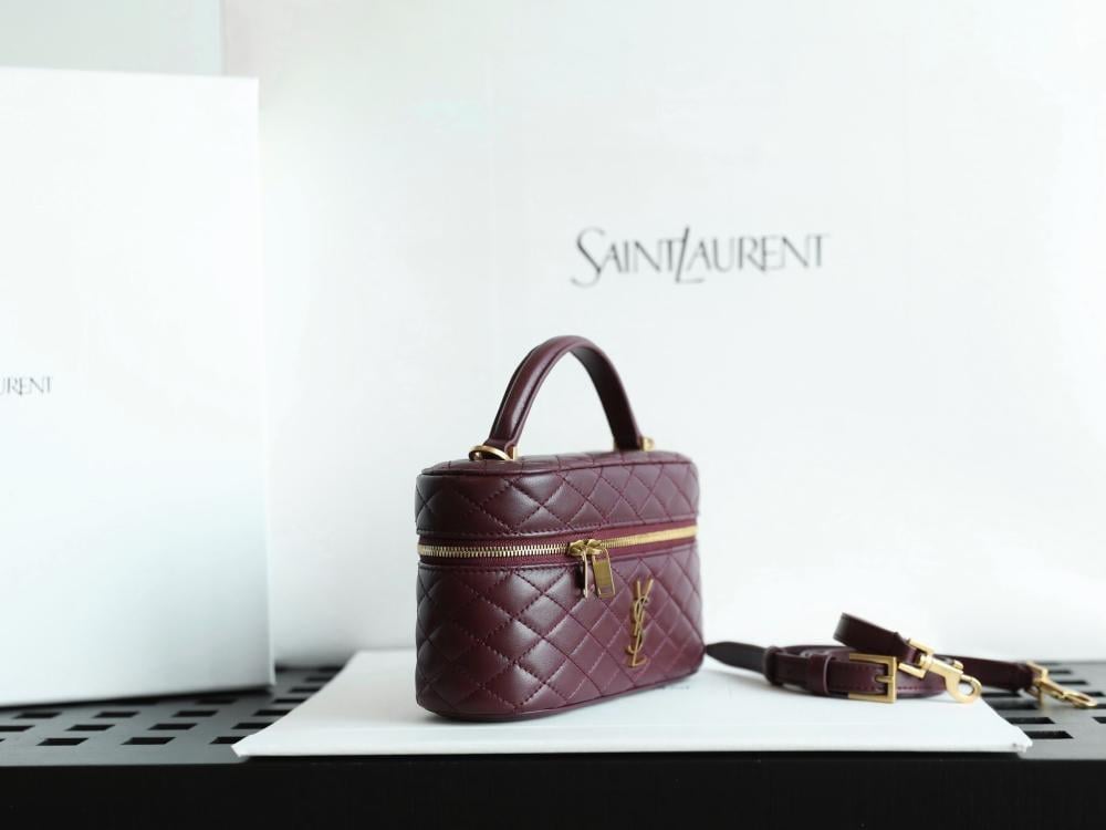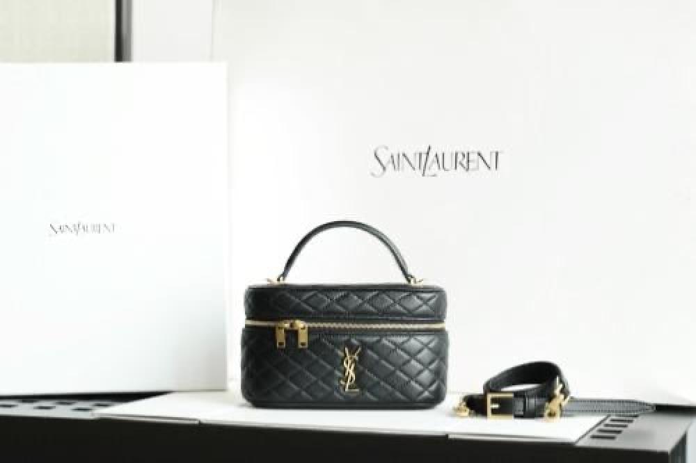 حقيبة سان لوران غابي فانيتي هي حقيبة يد فاخرة مصنوعة من جلد الخراف المبطن، وتتميز بتصميم أنيق وميزات عملية.