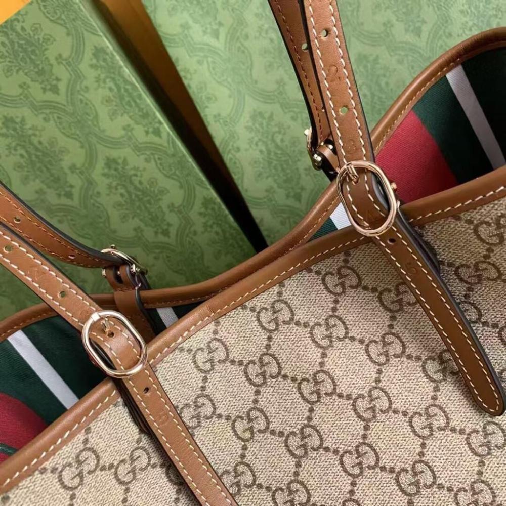 - تتميز ببطانة داخلية مخططة باللونين الأحمر والأخضر، وهي ألوان مميزة لغوتشي.