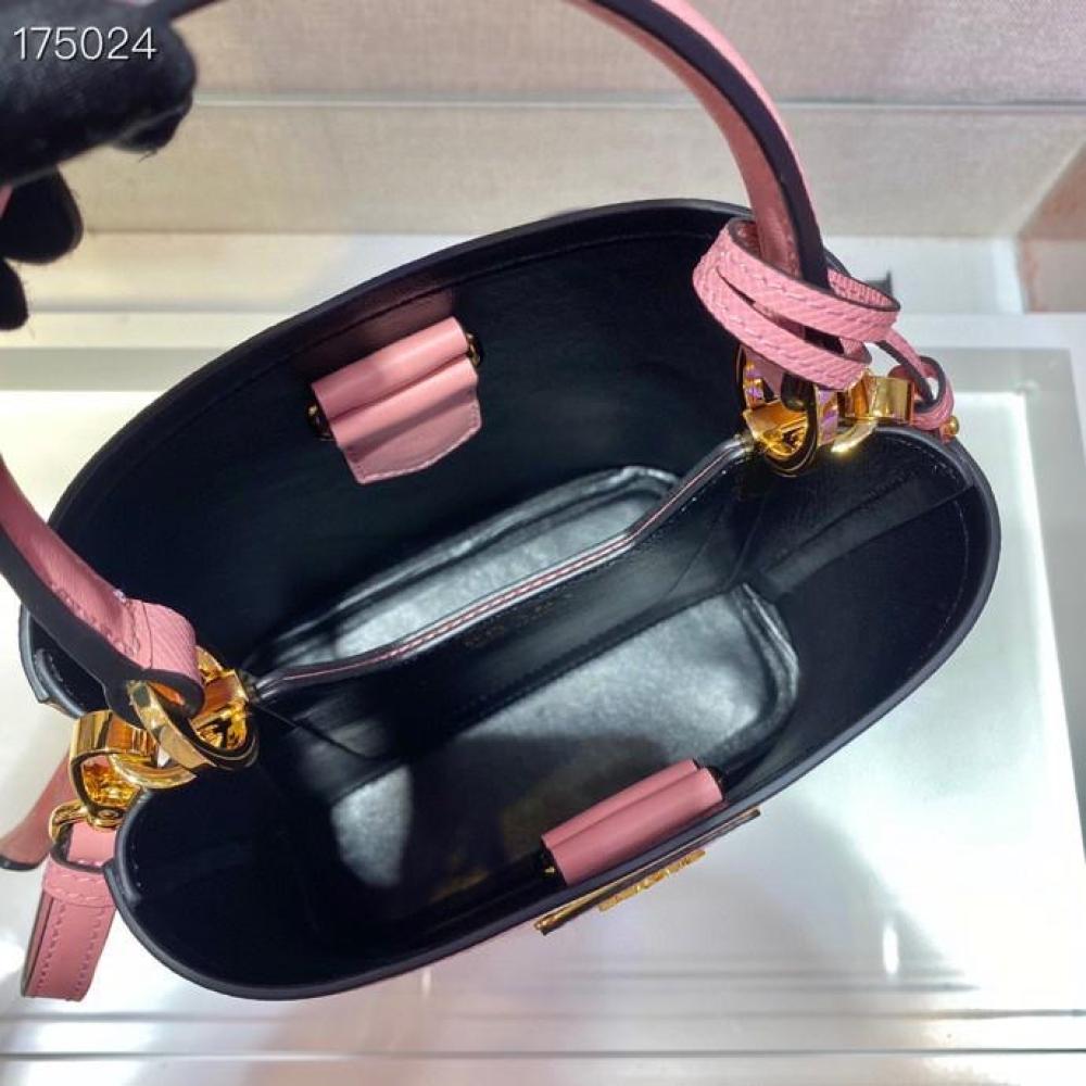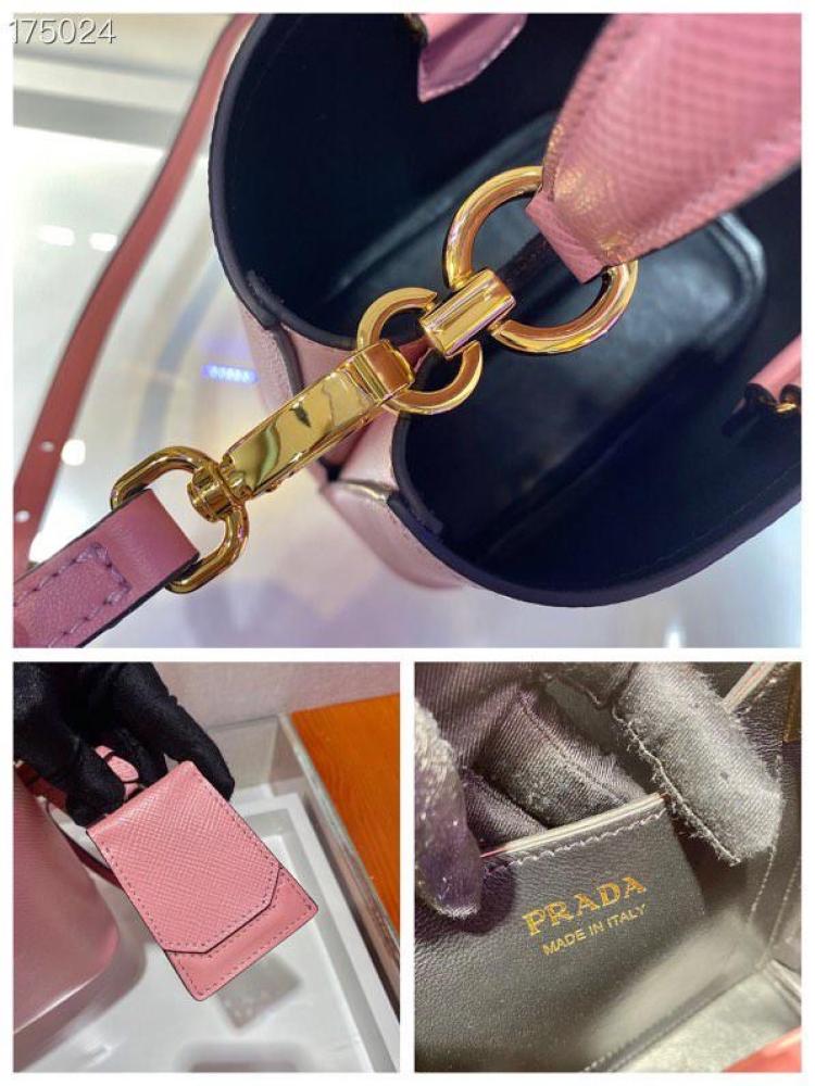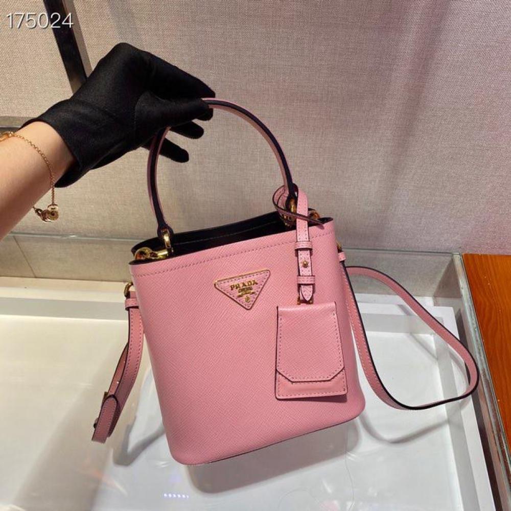 حقيبة برادا بانييه صغيرة 17cm من جلد السافيانو (Prada Panier Small Saffiano Leather Bag) باللون الوردي.